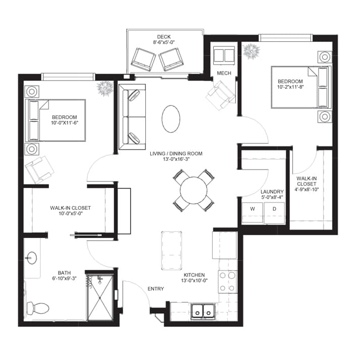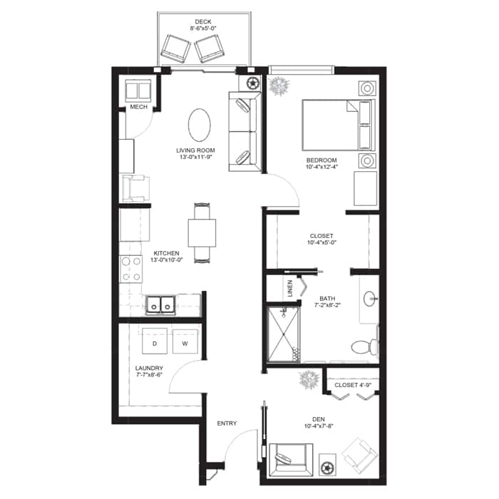 Choose a studio, one-bedroom, one-bedroom with den or two-bedroom floor plan to fit your lifestyle.